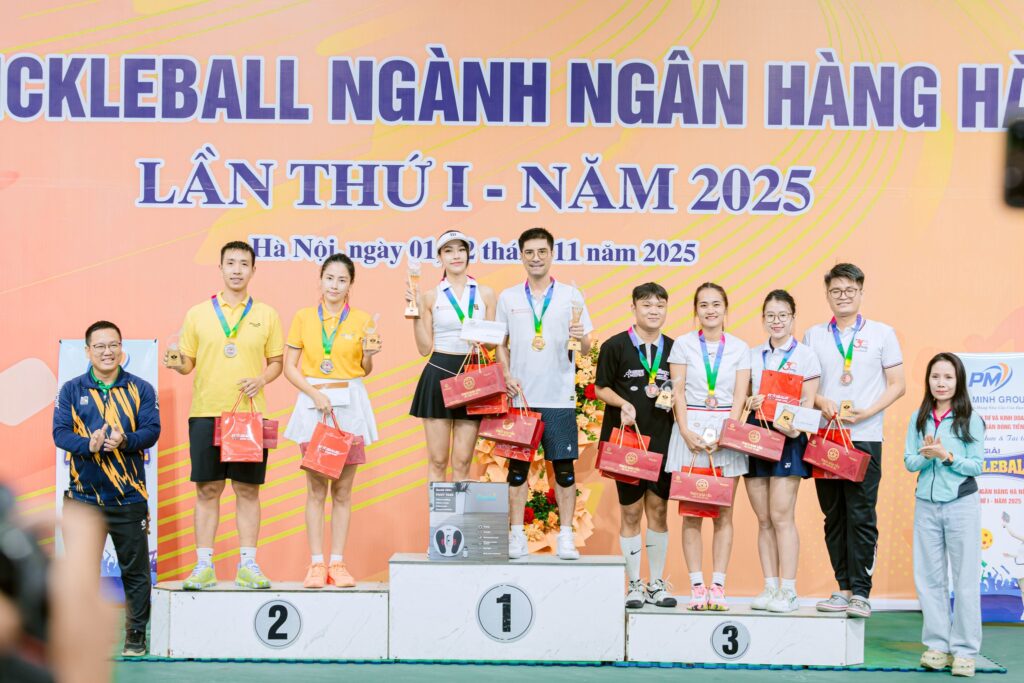 Sau hai ngày thi đấu sôi nổi tại Nhà thi đấu quận Cầu Giấy, Giải Pickleball Ngành Ngân hàng Hà Nội lần thứ nhất – năm 2025 đã diễn ra thành công tốt đẹp để khép lại một sự kiện thể thao ý nghĩa, góp phần gắn kết cộng đồng cán bộ, nhân viên trong ngành tài chính – ngân hàng trên địa bàn Thủ đô.