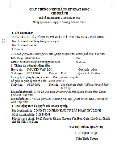 Nhằm nâng cao hiệu quả quản lý và phát triển hoạt động kinh doanh. Công ty cổ phần đầu tư tập đoàn Phú Minh quyết định bổ nhiệm ông Nguyễn Văn Lợi giữ chức vụ Giám đốc chi nhánh Huế.